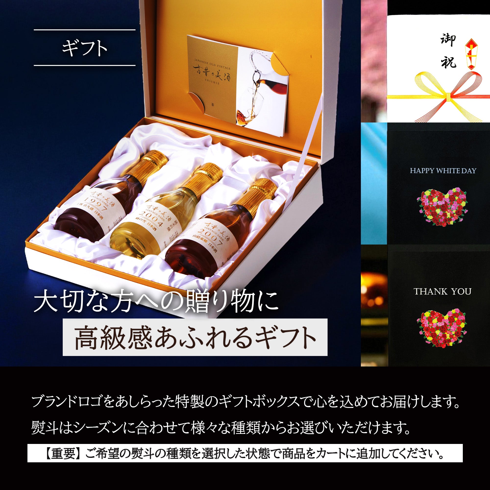 古昔の美酒は、日本全国から厳選したヴィンテージ古酒を扱うブランドです。新酒生産量の0.001%という希少な古酒を、ソムリエが厳選しています。