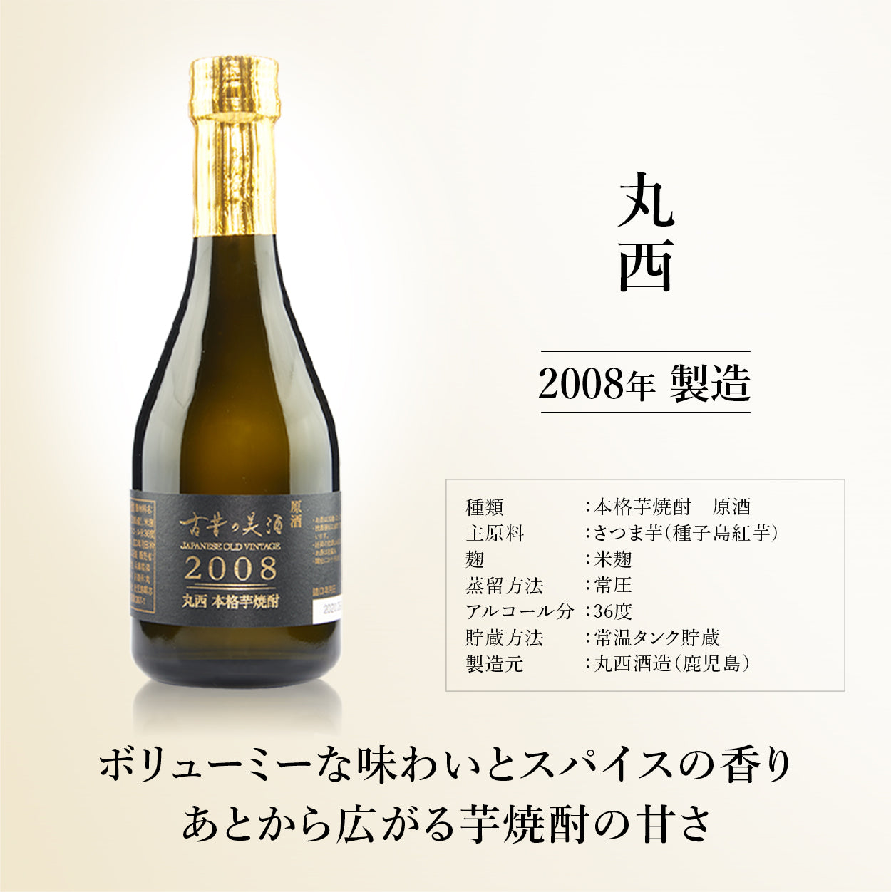 高級ヴィンテージ芋焼酎『丸西-Marunishi-』(2008年)