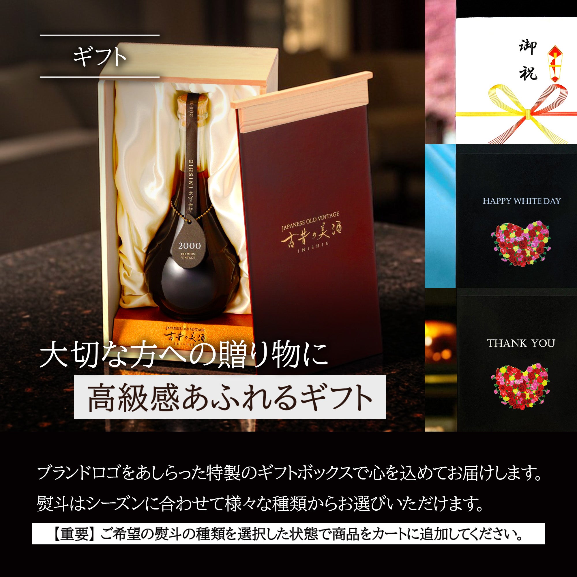 古昔の美酒は、日本全国から厳選したヴィンテージ古酒を扱うブランドです。新酒生産量の0.001%という希少な古酒を、ソムリエが厳選しています。